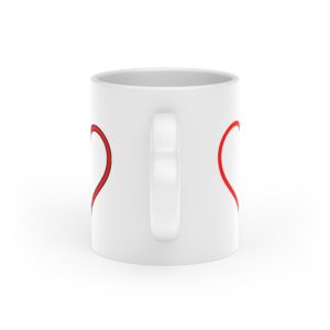 Quite likely the cutest way to start any day, this mug comes with a heart-shaped handle that adds a lovely touch to a daily staple. Available in an 11oz (0.33l) size, each heart-shaped mug is made with durable white ceramic that is perfect for printing and features a Duraglaze gloss coating for looks that are long-lasting.